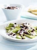 Mélange fromage blanc granuleux - myrtilles sur lit de Carpaccio d’avocats Découvrez notre recette du jour! Vers les recettes